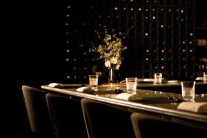 갤러리 공간에 전시된 그림 중 하나를 밀면, 셰프 카운터를 둘러싼 14개의 좌석이 전부인 아늑하고 따스한 다이닝 공간이 모습을 드러냅니다. 이 비밀스러운 구조는 뉴욕의 스피크이지([translate:Speakeasy]) 문화에서 영감을 받은 것으로, 숨겨진 장소를 발견하는 즐거움부터 미식 경험의 일부로 설계되었습니다.
